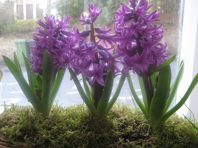 My friend Ann gave me these purple hyacinths. I've not seen this colour before. They also smell wonderful.